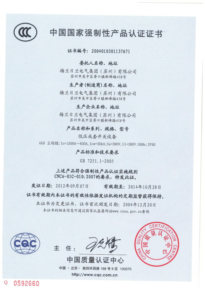 (成套)GGD主母線資質(zhì)證書