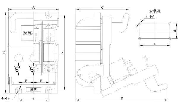 開(kāi)關(guān)由底座、蓋和滅弧室等部分組成,均由耐弧塑料制成,為全塑型結(jié)構(gòu)。靜觸頭直接裝在底座上,滅弧室拆裝方便,每個(gè)滅弧室都有內(nèi)室和外室二部分,采用多片金屬滅弧柵,增強(qiáng)了滅弧能力,提高了觸頭壽命。