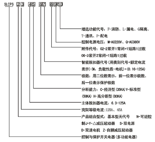 SLCPS即“控制與保護(hù)開(kāi)關(guān)電器”是低壓電器中的新型產(chǎn)品,是我國(guó)九十年代最新研發(fā)的填補(bǔ)國(guó)內(nèi)空白的第一代大類(lèi)產(chǎn)品,作為新的大類(lèi)產(chǎn)品,其產(chǎn)品類(lèi)別代號(hào)為“CPS”是英文“Control and Protecti ve Switchi ng Devi ces”的縮寫(xiě),符合的標(biāo)準(zhǔn)為IEC60947-6-2 (1997)《低壓開(kāi)關(guān)設(shè)備和控制設(shè)備第6部分:多功能電器第2節(jié):控制與保護(hù)開(kāi)關(guān)電器》(1992年8月第一版)和GB14048.9《低壓開(kāi)關(guān)設(shè)備和控制設(shè)備多功能電器(設(shè)備)第2部分;控制與保護(hù)開(kāi)關(guān)電器》(等同采用l EC60947-6-2)。