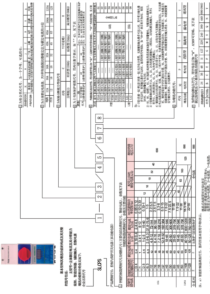 SLCPS控制與保護(hù)開(kāi)關(guān)產(chǎn)品選型表