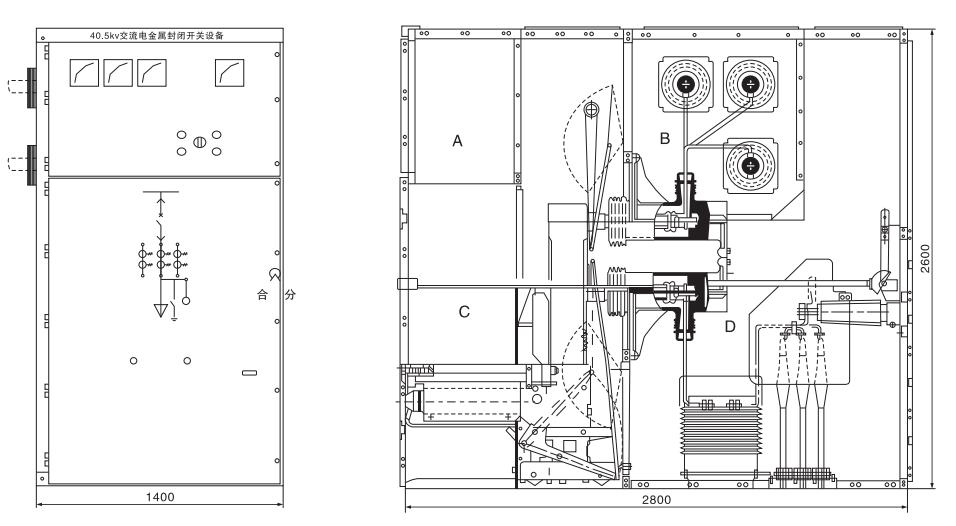 電纜室內(nèi)可安裝PT、CT、接地開關(guān)、避雷器和多根電纜。