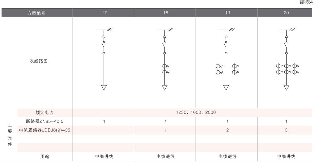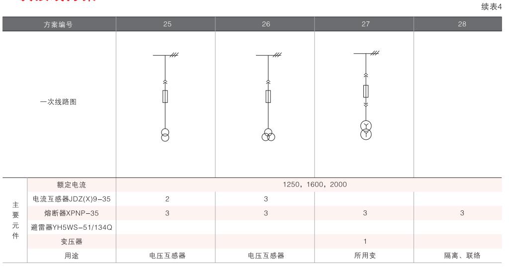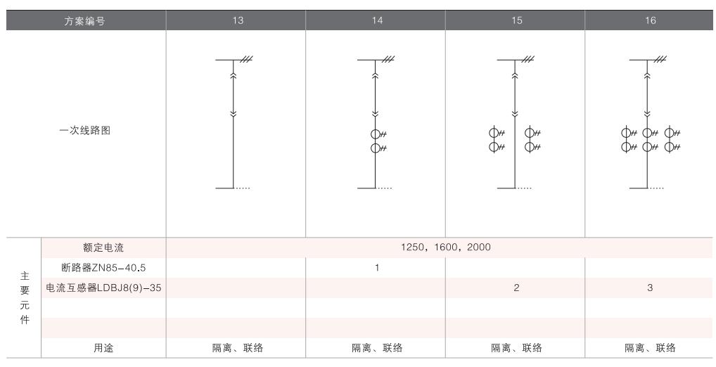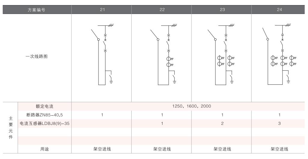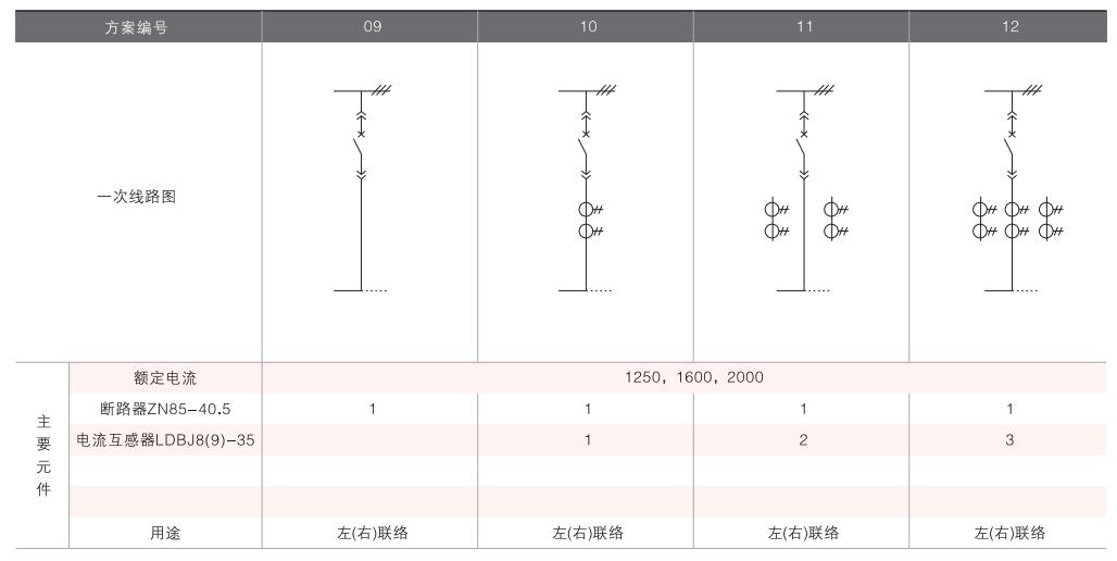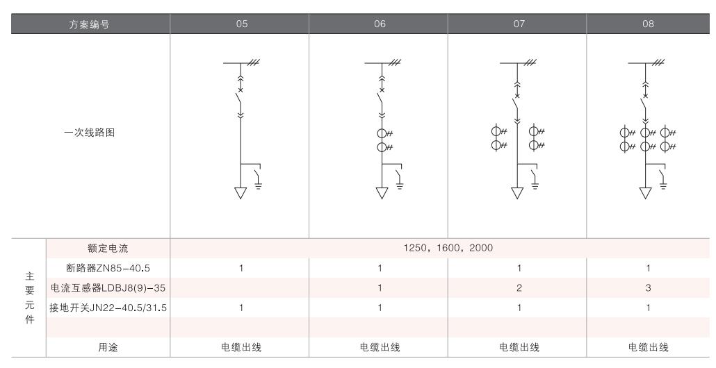 開關(guān)柜的一次接線方案有27個(gè)常用典型方案,能滿足用戶電纜進(jìn)出線、架空進(jìn)出線,聯(lián)絡(luò)級(jí)測(cè)量、保護(hù)等的需要,若有不同與現(xiàn)有方案的其他方案的需要,請(qǐng)與廠方協(xié)商。