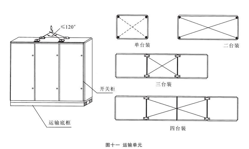 運(yùn)輸單元:產(chǎn)品分四種規(guī)格的運(yùn)輸單元:單臺(tái)裝、二臺(tái)裝、三臺(tái)裝和四臺(tái)裝。但總長(zhǎng)度不得超過(guò)3m,見(jiàn)圖十一。